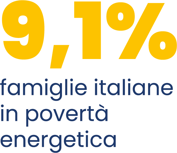 Nel 2024, secondo i dati OIPE, il 9,1% delle famiglie italiane (2,4 milioni) si trovava in condizione di povertà energetica, ovvero la mancanza di accesso ai servizi energetici essenziali che garantiscono livelli di vita e di salute dignitosi: secondo l’Unione Europa, tale condizione si verifica quando la spesa per l’energia incide in modo sproporzionato sul reddito, e si lega anche all’inefficienza energetica delle abitazioni.
